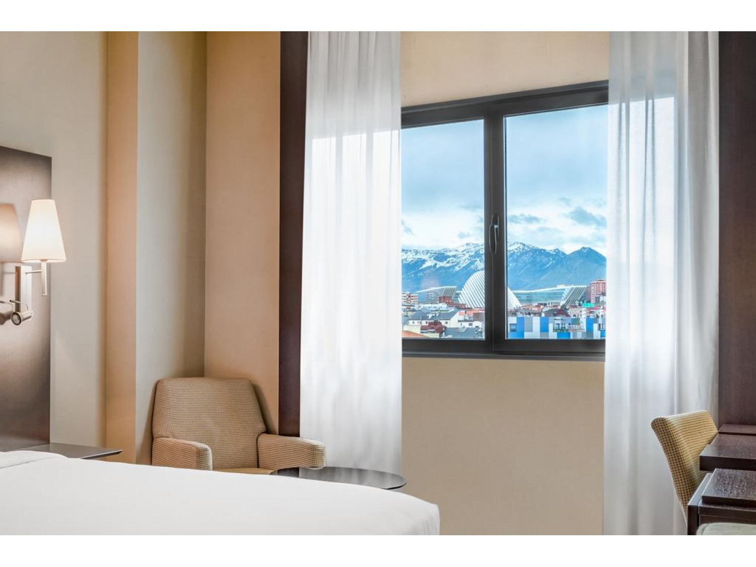 El hotel ofrece 155 habitaciones totalmente equipadas con todos los servicios de un hotel urbano de alta calidad y una cocina vanguardista del AC Lounge. En él se ofrece un exquisito menú que fusiona la tradición culinaria de Oviedo con un toque de gastronomía moderno.